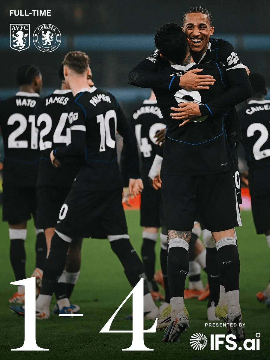 虎扑03月05日讯 英超第29轮,切尔西客场4-1逆转维拉,积分榜上回到第五的位置。